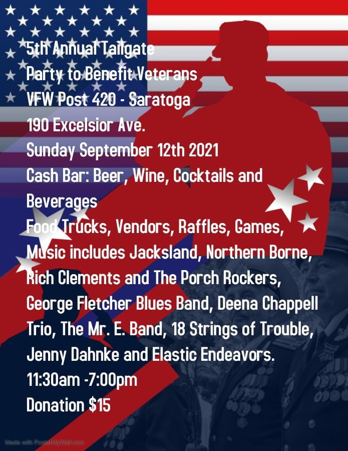 September 12, 2021 @ 11:30 am - 7:00 pm Veterans’ Fundraiser in Saratoga Springs Saratoga Springs VFW 420 190 Excelsior Avenue, Saratoga Springs, NY, United States